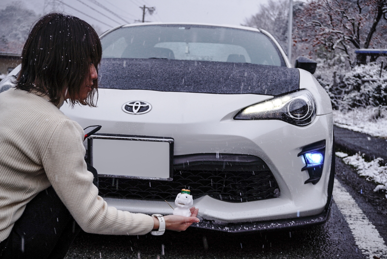 人生で初めて愛車を手にして、愛車との思い出を残すために行くとこ行くとこカメラを構えてはシャッターを切ることが日常です。愛車と初雪日を共に過ごし共にハシャいだ一生忘れられない思い出の1枚です。